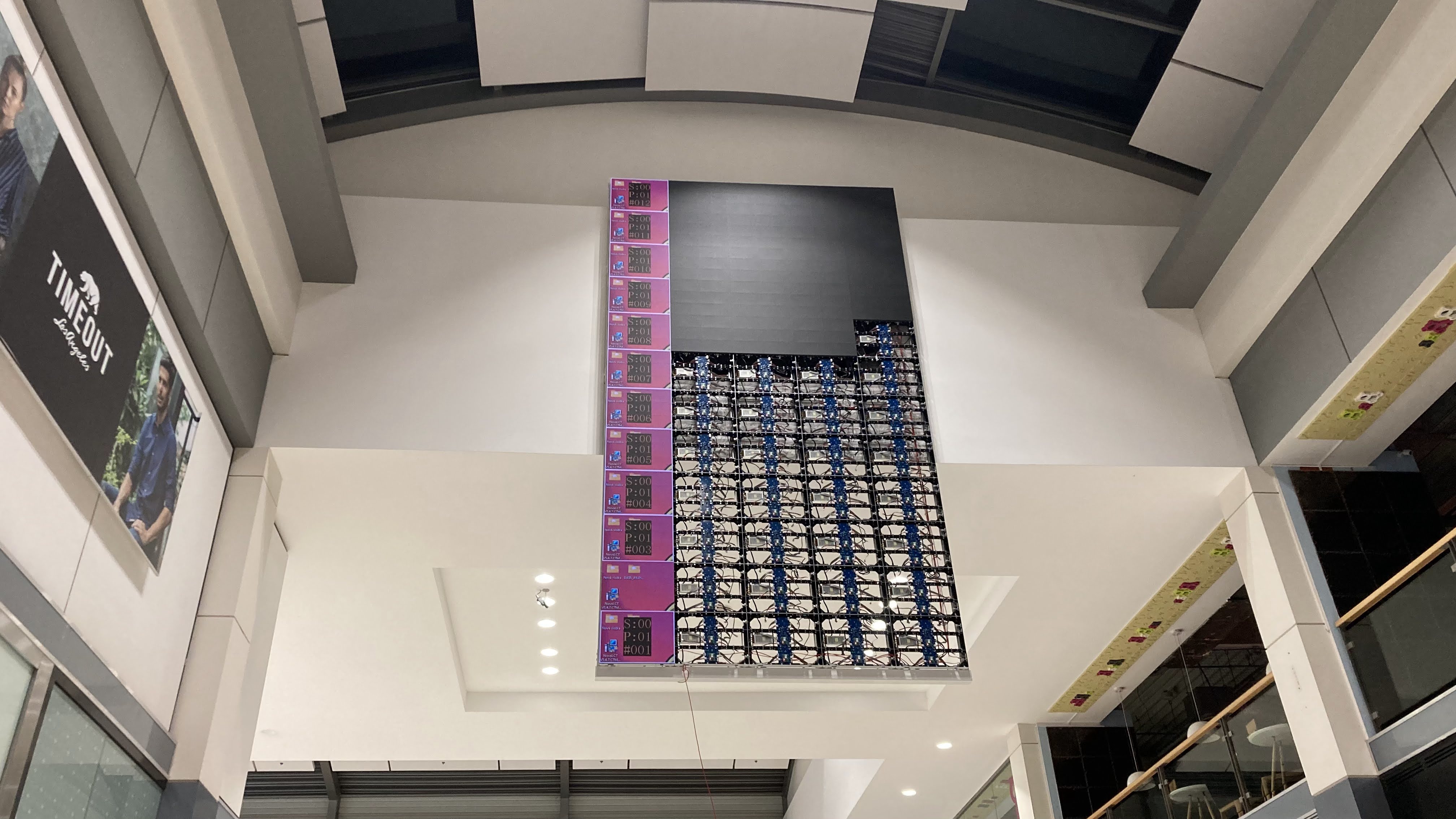 Ve spolupráci s technickou správou objektu se nám podařilo citlivě zabudovat všechny LED obrazovky do stěn nákupního centra. Splnili jsme tak požadavek investora, aby naše LED technologie nenápadně splynula s architekturou obchodního domu.